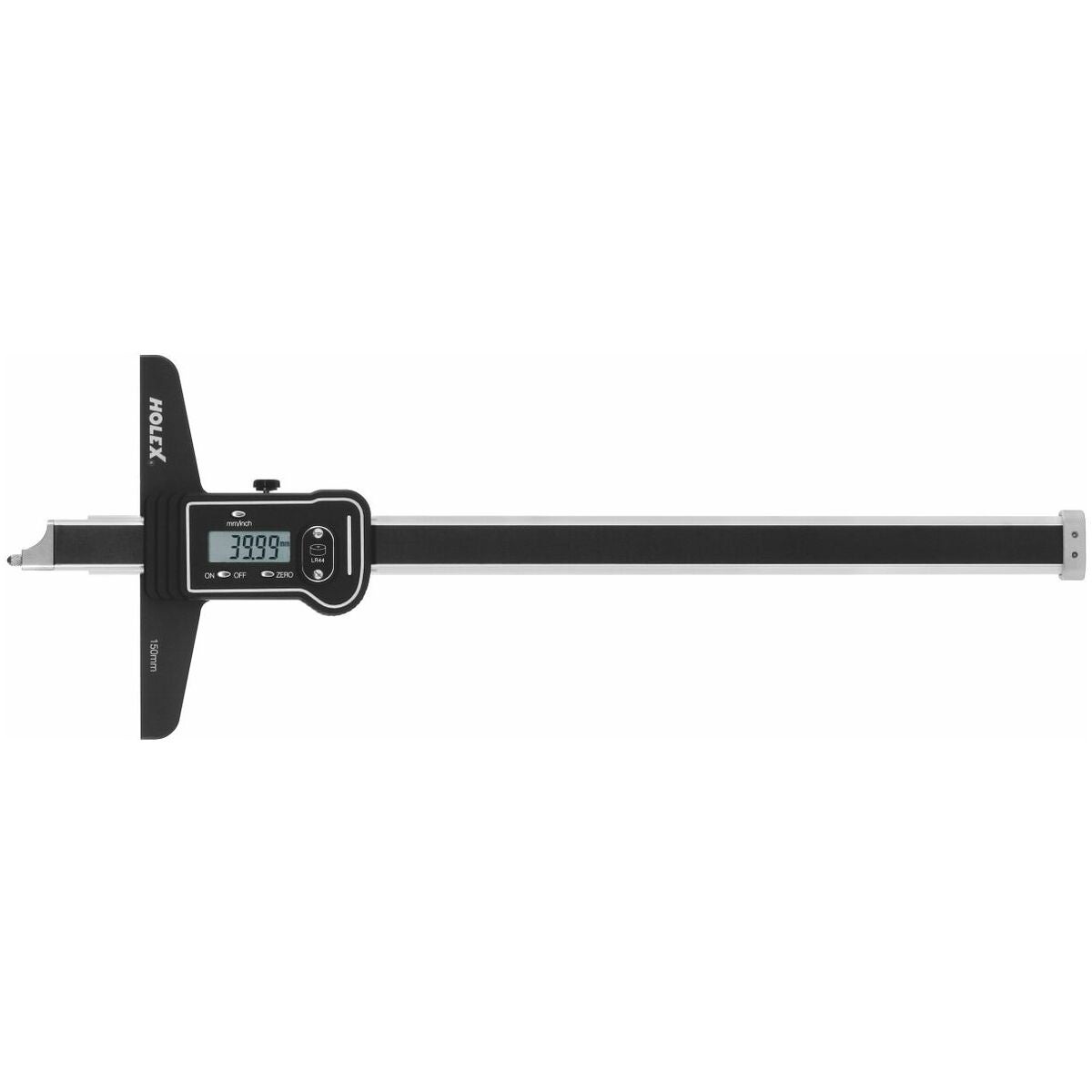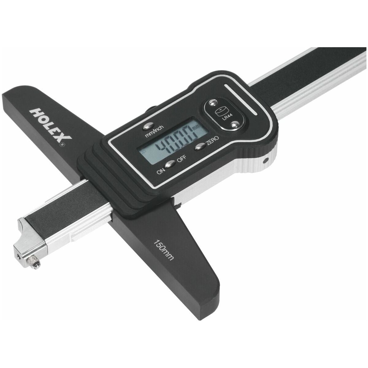 Lättavläst digitaldisplay. Optimala glidegenskaper tack vare dubbla glidskenor. Mätbrygga av aluminium med hård beläggning och två hål (M2,5), förskjutna 90°, för infästning av mätspetsarna.