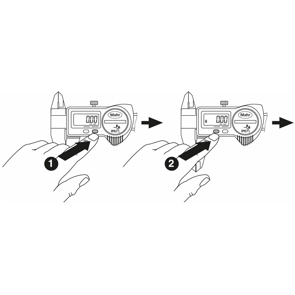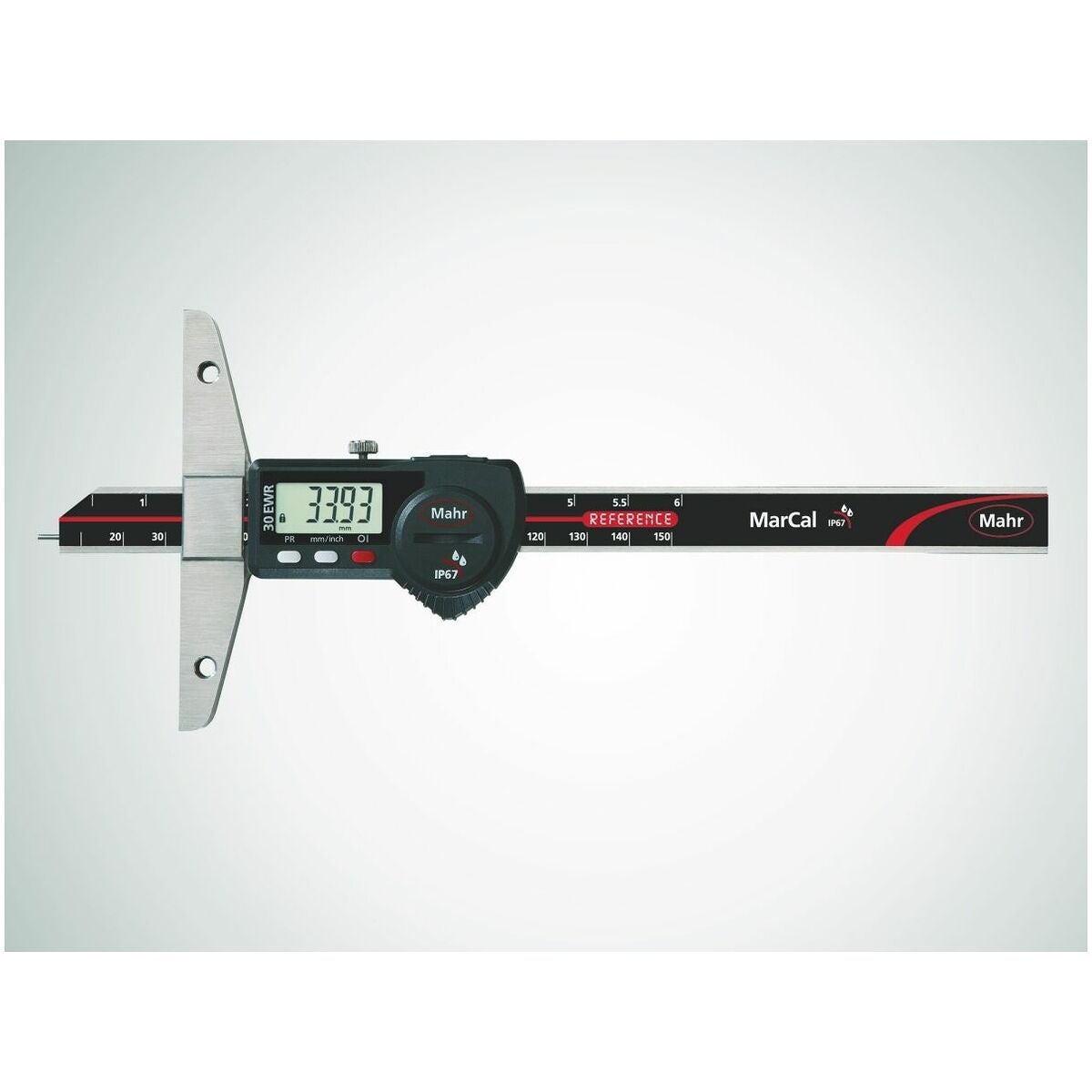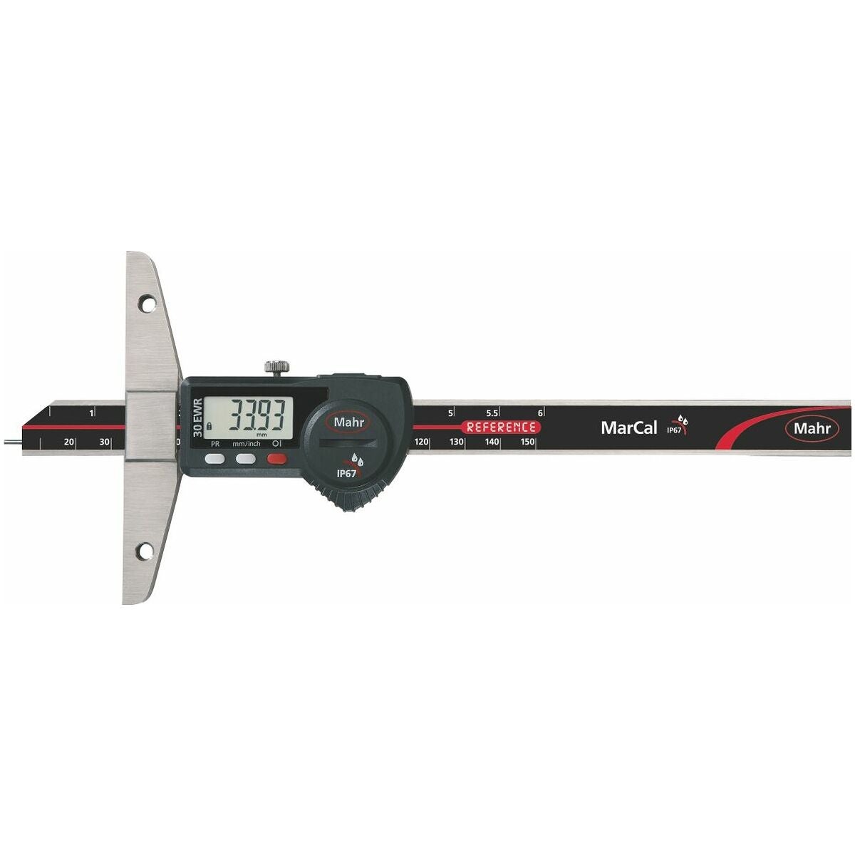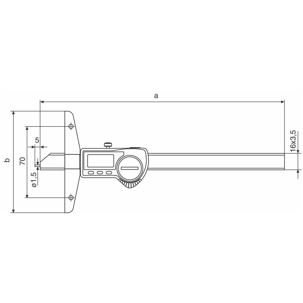 Modernt energieffektivt mätsystem. Mätytorna är finläppade. Med preset (måttförinställning) t.ex. för avståndsmätning med mätspets nr 418630. Mätskenan är försedd med ett härdat, tunt mätstift framtill, ⌀ 1,5 mm, längd 5 mm.