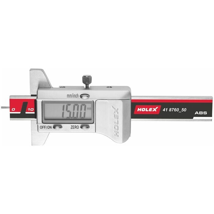 Digitala djupskjutmått med absolutskala, ingen nollställning behövs. Mycket hög noggrannhet tack vare glasskala. Elektroniken stängs av automatiskt efter cirka 5 minuter och startas enkelt genom att den skjuts fram.