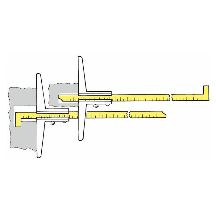 Mattförkromad nonie. Mätskena och nonie med tydligt graverad skala. Tunn vinklad mätskena med skala på båda sidor. Genom att vända mätskenan får man även ett normalt djupmått. Finslipade mätytor.
