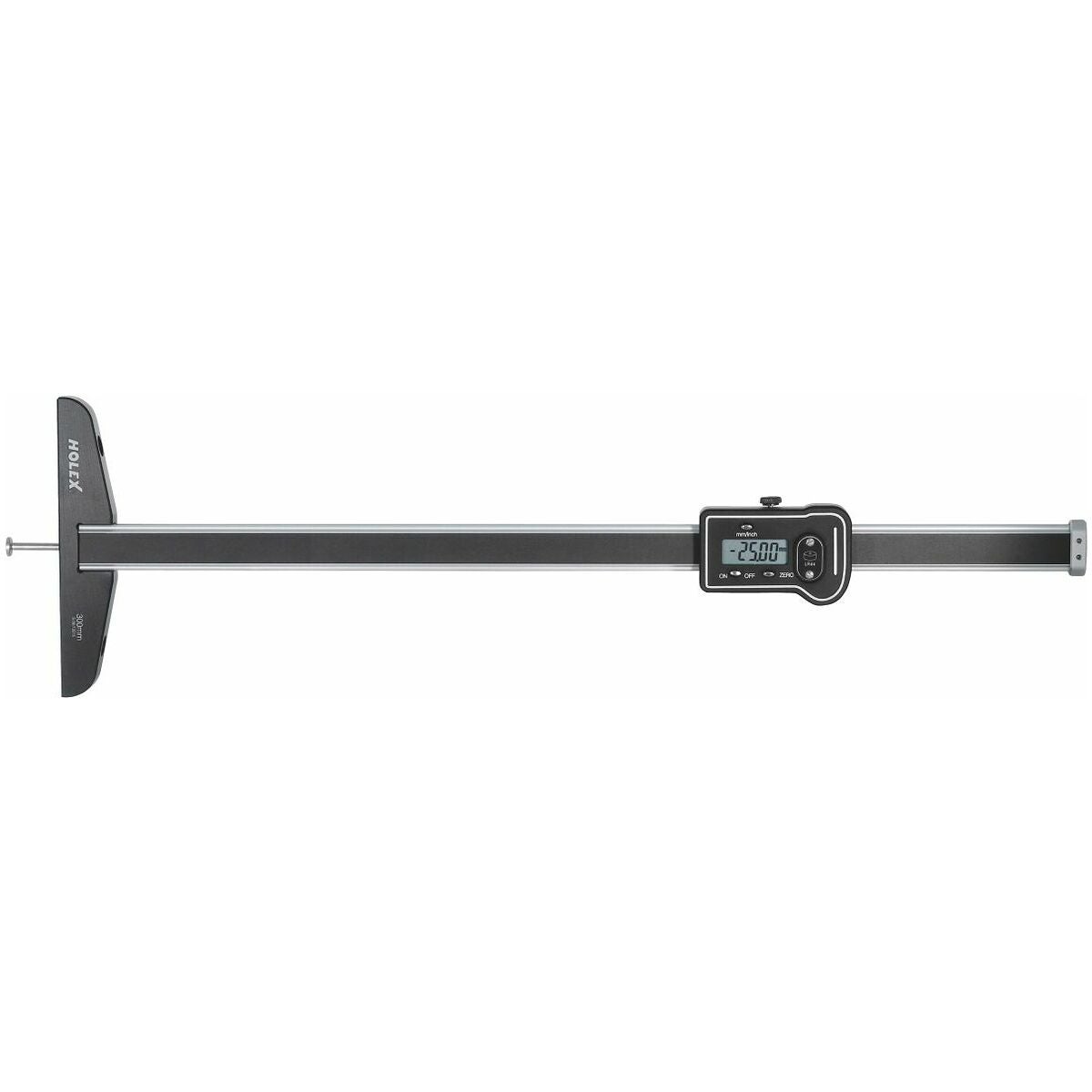 Digitalt djupmått för mätning av instick, spår, hål och avsatser. Viktbesparande stålkonstruktion med förstärkt aluminiumprofil, med oxidbelagda ytor. Optimala styr- och glidegenskaper tack vare de dubbla glidskenorna på insidan. Olika mätspetsar (M2,5) kan skruvas in i mätstången.