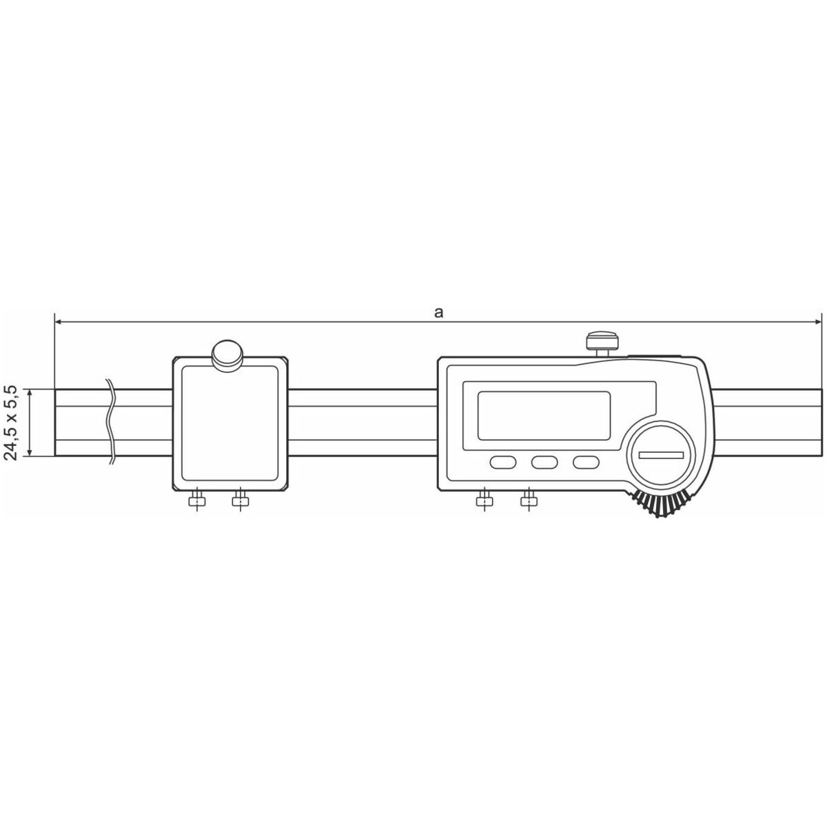 Utbytbara mätarmar, sondinsatser och stoppelement (tillvalstillbehör). Sifferdisplayen går alltid att avläsa från operatörssidan. Tillämpningsområdet kan utökas genom vridning. Likformig viktfördelning vid små dimensioner, eftersom båda mätarmhållarna kan förskjutas på skena. Skjutreglage och skena rostfria och härdade.