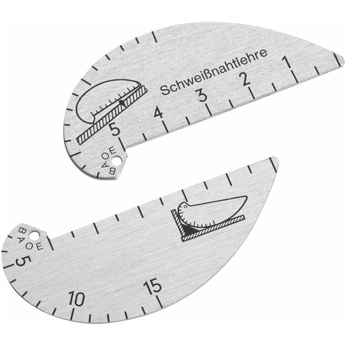 Enkel svetsfogstolk av aluminium Mätområde planfogar 0 – 5 mm. Mätområde kälsvetsfogar 2 – 15 mm.