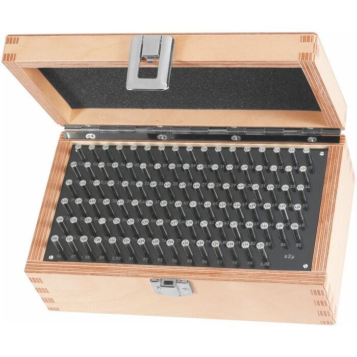 Av högkvalitativt tolkstål, härdat (60 ± 2 HRC) och anlöpt. Måttpinnsatserna är överskådligt placerade i en trälåda med märkta hål (från och med 1,5 mm ⌀ är även själva måttpinnarna märkta). Måttpinnarnas längd 40 mm upp till ⌀ 0,99 mm, därefter 70 mm. Från ⌀ 0,1 mm till ⌀ 2,49 mm på båda sidor med avfasning, från ⌀ 2,5 mm på ena sidan med avfasning.