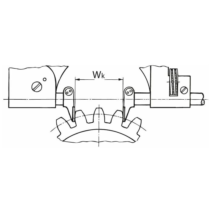 Med utskjutbara, hårdmetallbestyckade mätskänklar. För diametrar på smala ansatser, centreringskanter, ansatser på axlar, avstånd mellan instick samt kuggvidd WK för bestämning av kuggtjockleken på cylindriska kugghjul med raka och sneda kuggar.