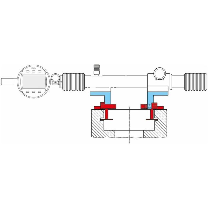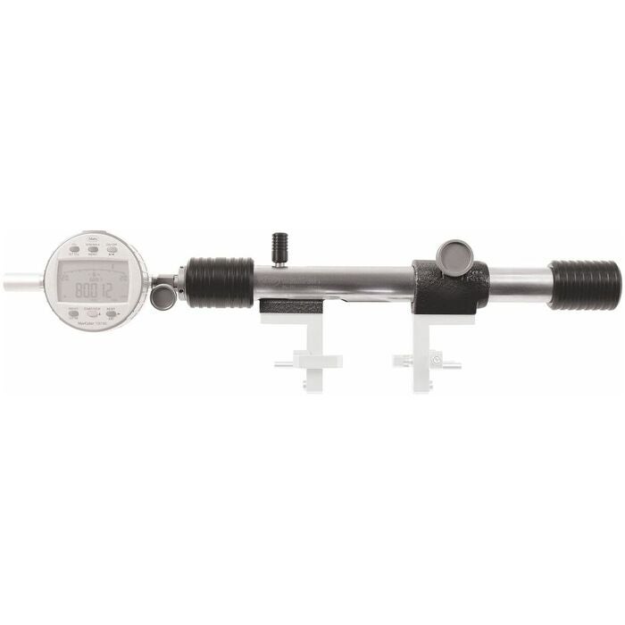 Stabil rörkonstruktion, slipad och hårdförkromad. Två skänkelhållare för de olika mätspetsarna. Mätområdet kan utökas med ca 75 mm genom att skänklarna vänds. Kan användas med alla mätur eller finmätur med skaft-⌀ 8 h 6 mm (levereras utan indikator).