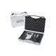 Kraftmätinstrument i skyddsväska, påskruvbara tillbehör för kraftpåföring (platt huvud, spårhuvud, kona, krok) och snabbguide.