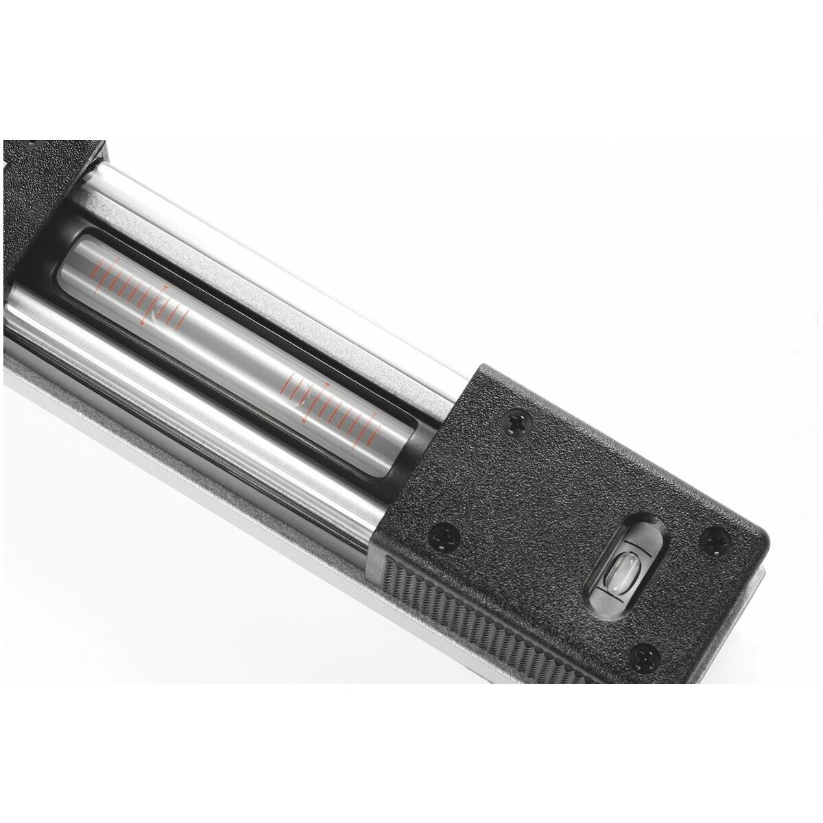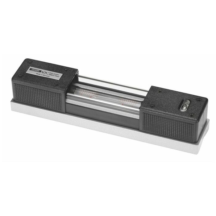 Kraftig kåpa av högklassigt specialgjutgods, hammarlackerat. Prismatisk och platt sula med vinkelfinlslipade stoppytor (viktigt vid ritsning, uppriktning etc.). Samtliga mätytor bearbetade exakt parallella med libellaxeln. Vardera en längd- och tvärlibell av glas. Med isolerhandtag på kåpan samt skyddsglas över libellerna.