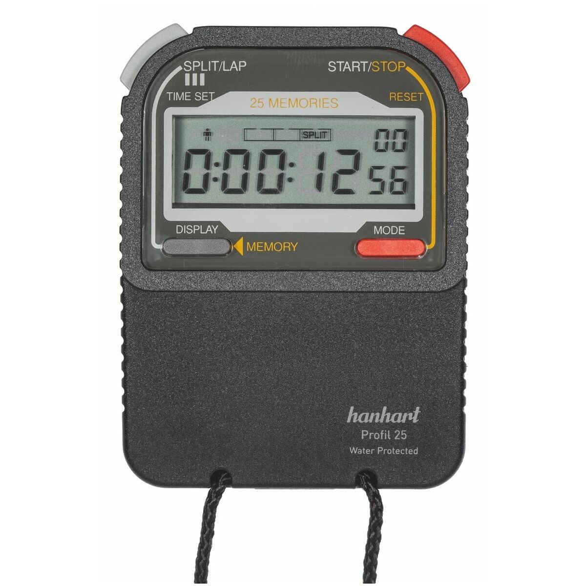 LCD-display, 8 mm sifferhöjd, 7-siffrig/+ 2 siffror för Event-räknare. Displayområde 9 h, 59 min., 59,99 s. Sifferstegvärde 1/100 s.