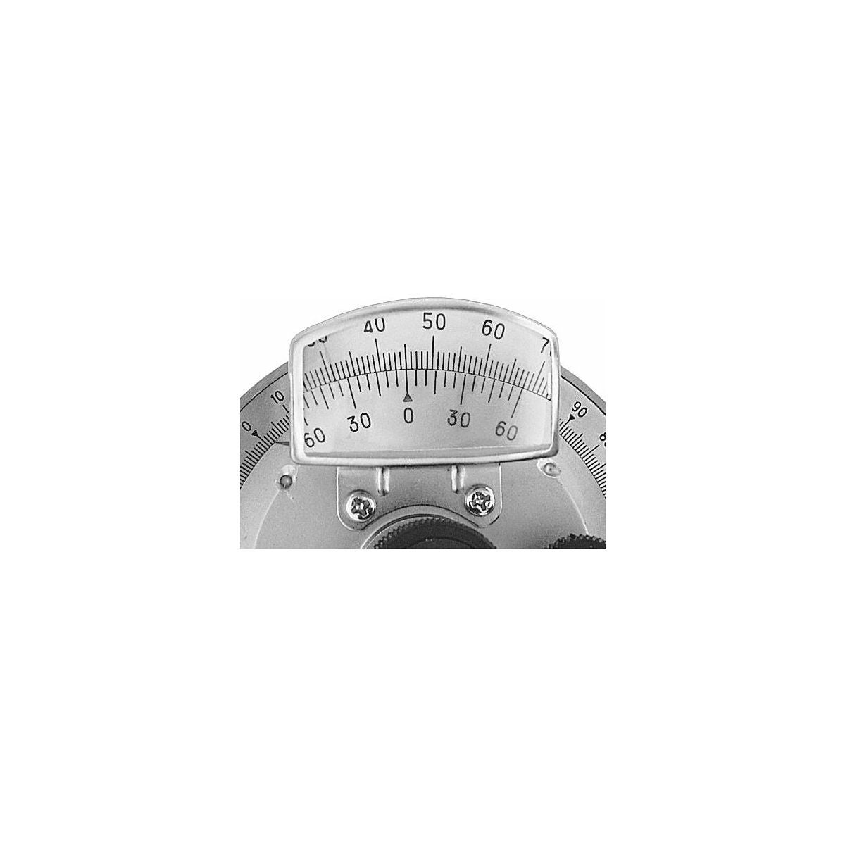 Överskådlig gradering och tydliga siffror på skalskivan 4 × 90°. Nonie och skalskiva i samma plan vilket garanterar felfri, parallaxfri avläsning. Mätskivan bländfritt förkromad.