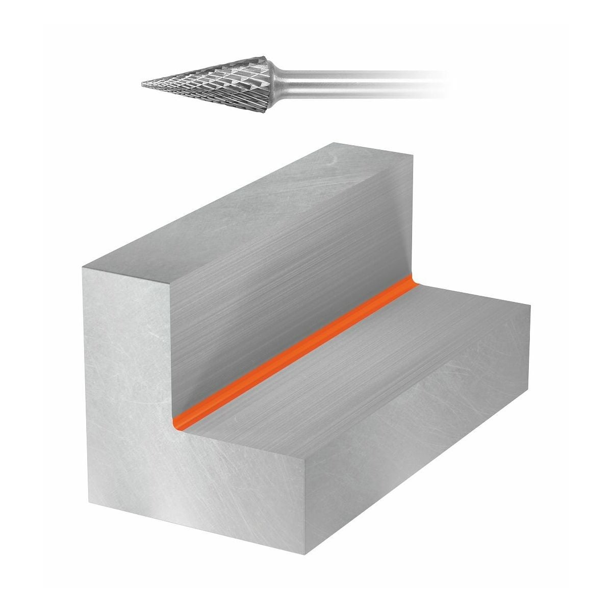 GARANT roterande filar tillverkas av förstklassiga hårdmetallkvaliteter med hög seghet och maximal skärkantsstabilitet i moderna CNC-maskiner. Om huvudets diameter är större än skaftets diameter är skaftet tillverkat av stål. Annars är även skaftet av hårdmetall.
