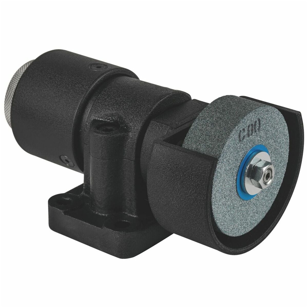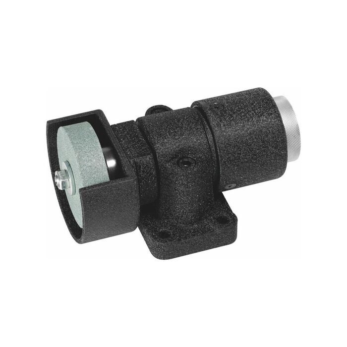 Skärpenhet för montering på slipmaskinens supportslid. Skärpenheten är försedd med en roterande kiselkarbidskärpskiva. Skärpningen sker med hjälp av centrifugalkraftsbromsning.