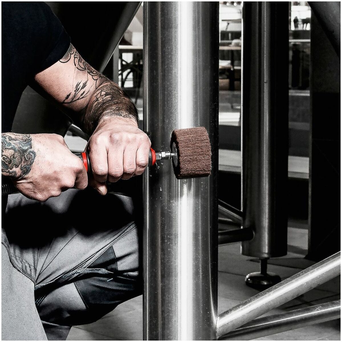 Kombination av slipduk och slipnylon.
