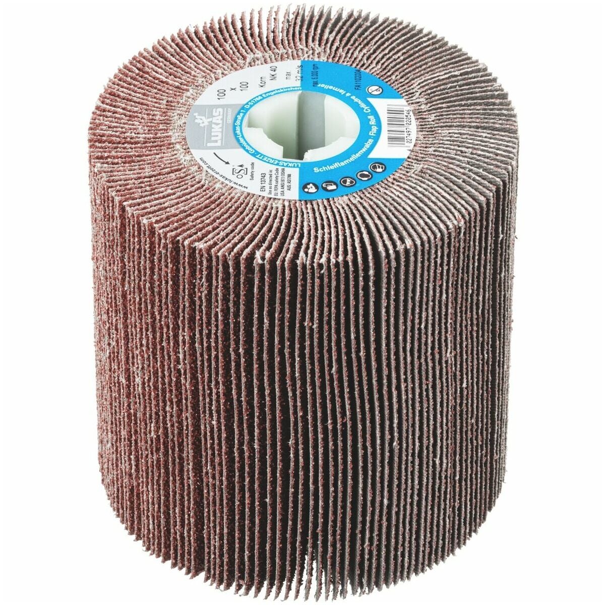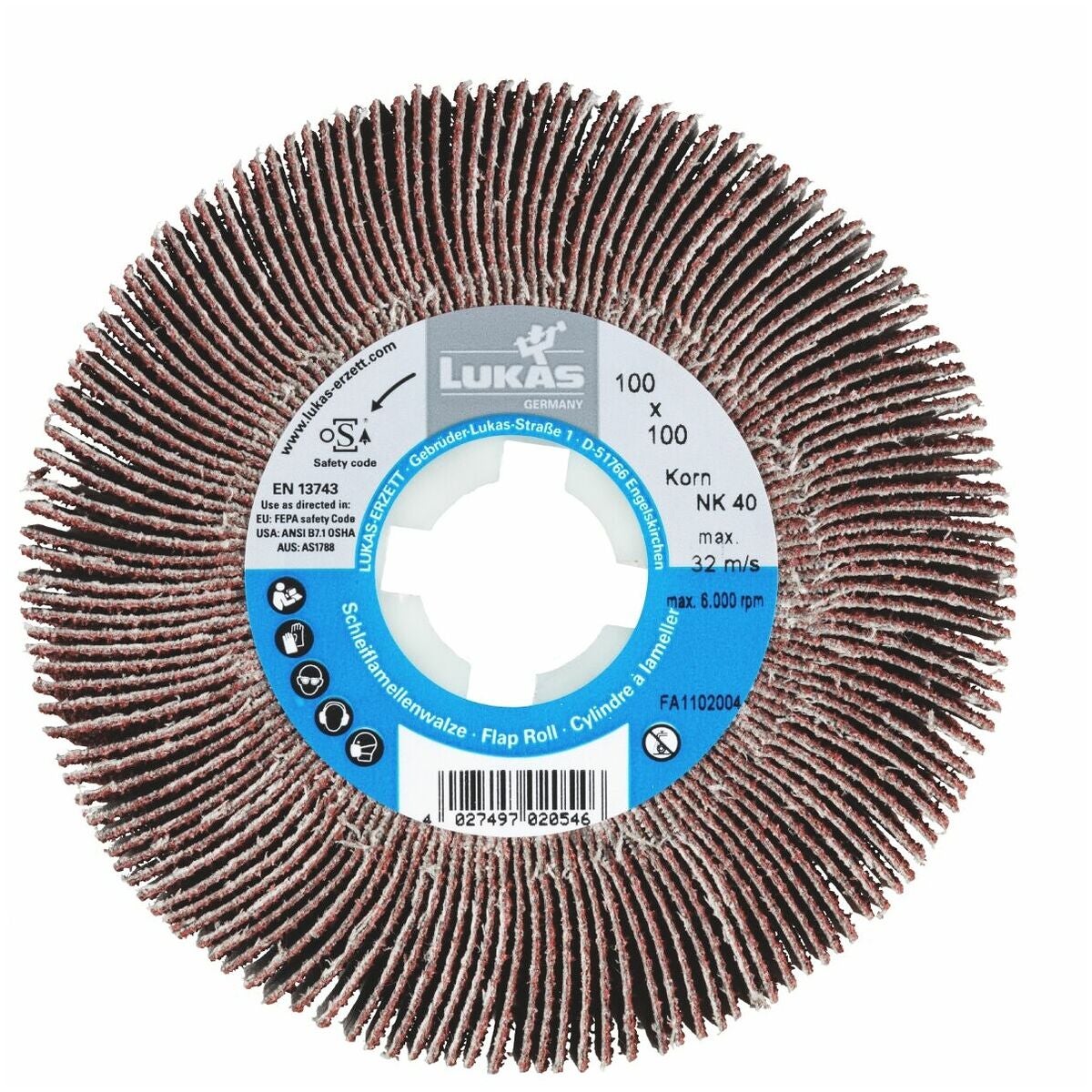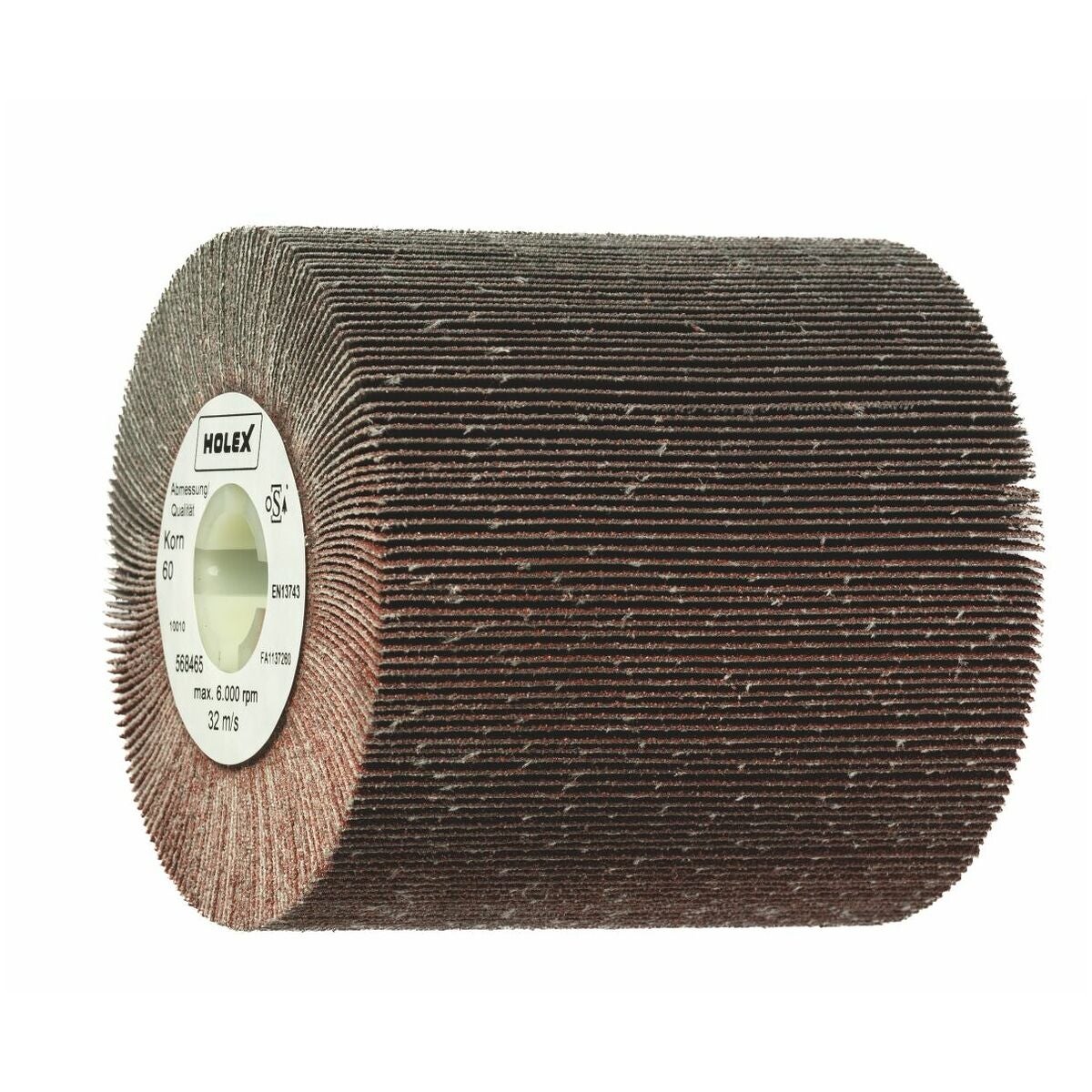 Radiellt infäst slipduk runt slipvalsens axel. Standardmått ⌀ 100×100 mm resp. smalt utförande ⌀ 100×50 mm för bearbetning av små ytor. Fästhål ⌀ 19 mm med universalkilspår.