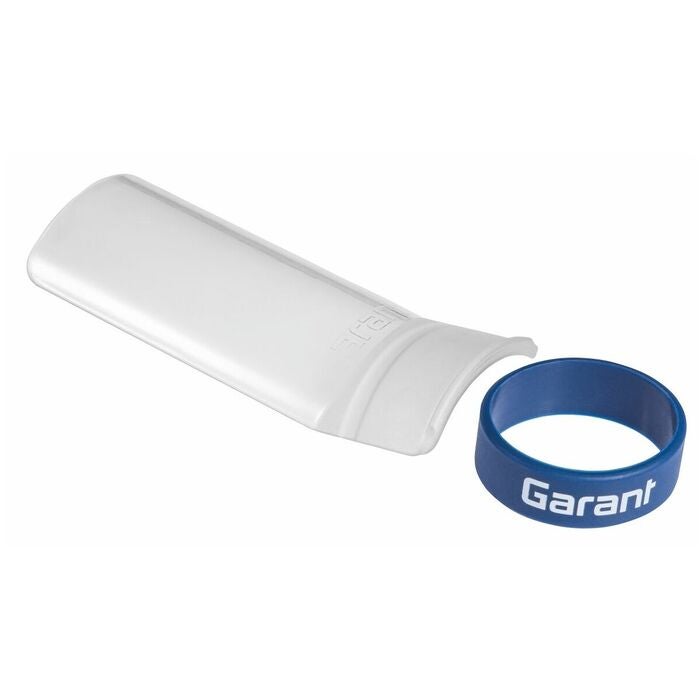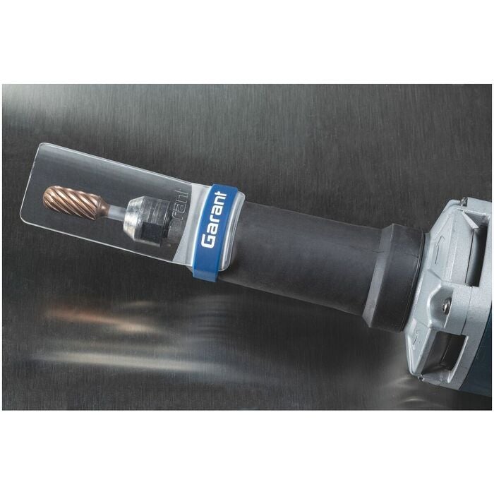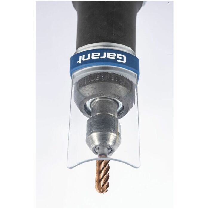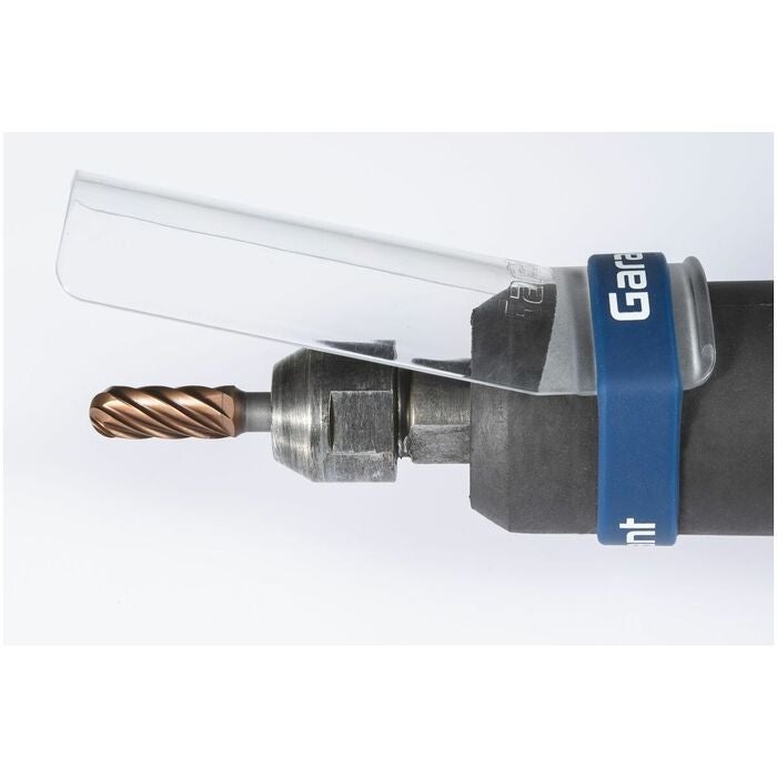 Spånskydd med klart siktglas. Enkel fixering för snabb fastspänning på den raka slipmaskinen med hjälp av en fästring. Målstyrd spånaavledning för bättre skydd mot spånflygning. Inkluderar 5 spånskydd.