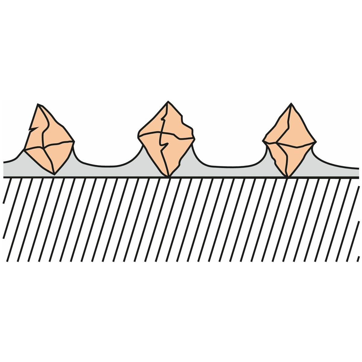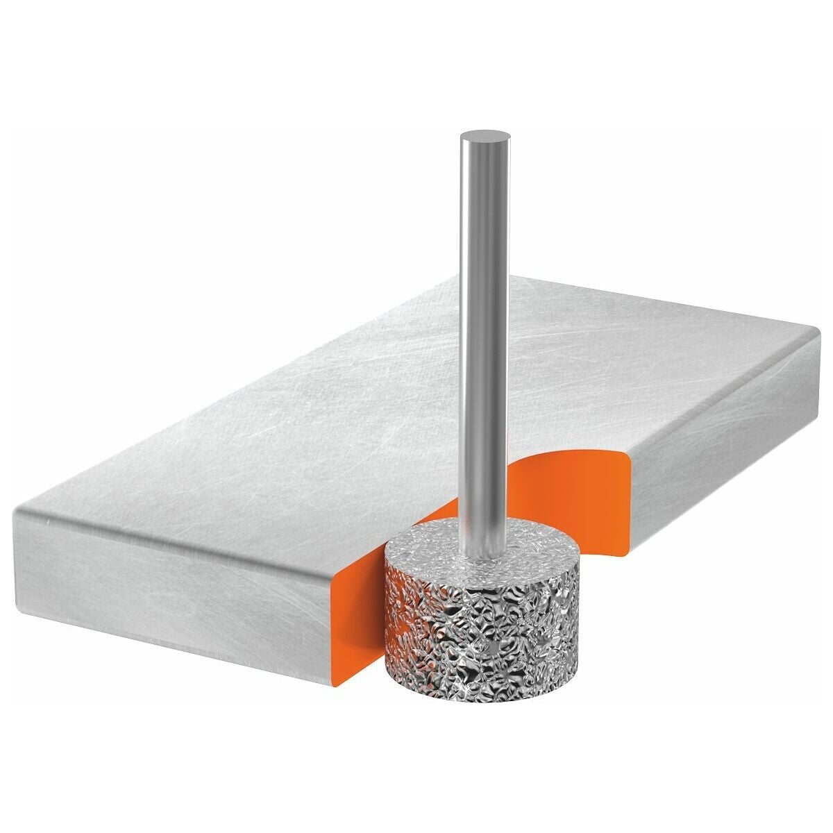 - Högre skärkraft jämfört med galvaniskt bundna slipstift tack vare stort kornutstick (ca 70 % av slipkornet sticker ut från bindningen) och starkare bindning.