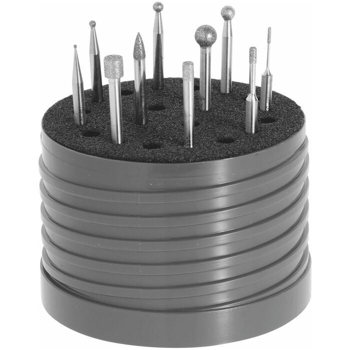 Sortiment med utvalda slipstift i de vanligaste formerna och måtten. skaft-⌀ 3 mm.