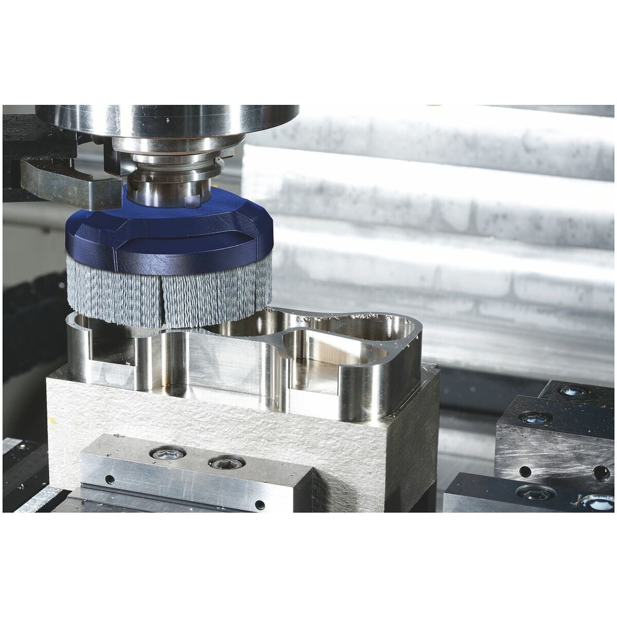 På CNC-bearbetningscentraler och vid robotanvändning, rekommenderas vid våtslipning med kylsmörjmedel. Bearbetning av plana komponenter: exakt avgradning, kantrundning, finbearbetning efter fräsning, ytfinish av t.ex. tätnings- och kontaktytor.