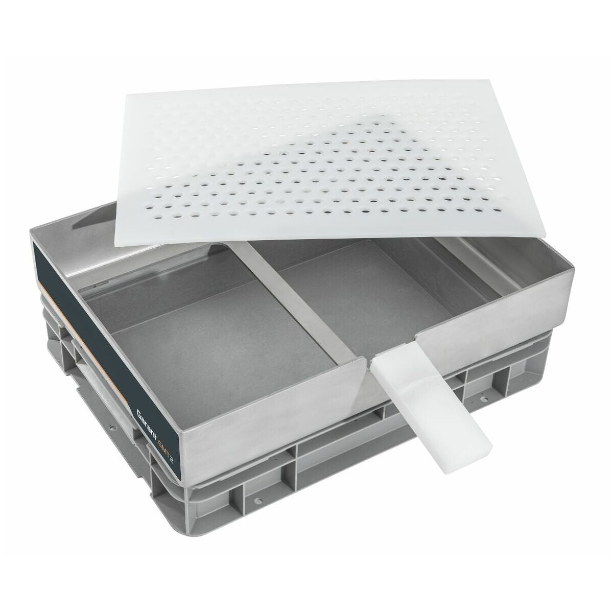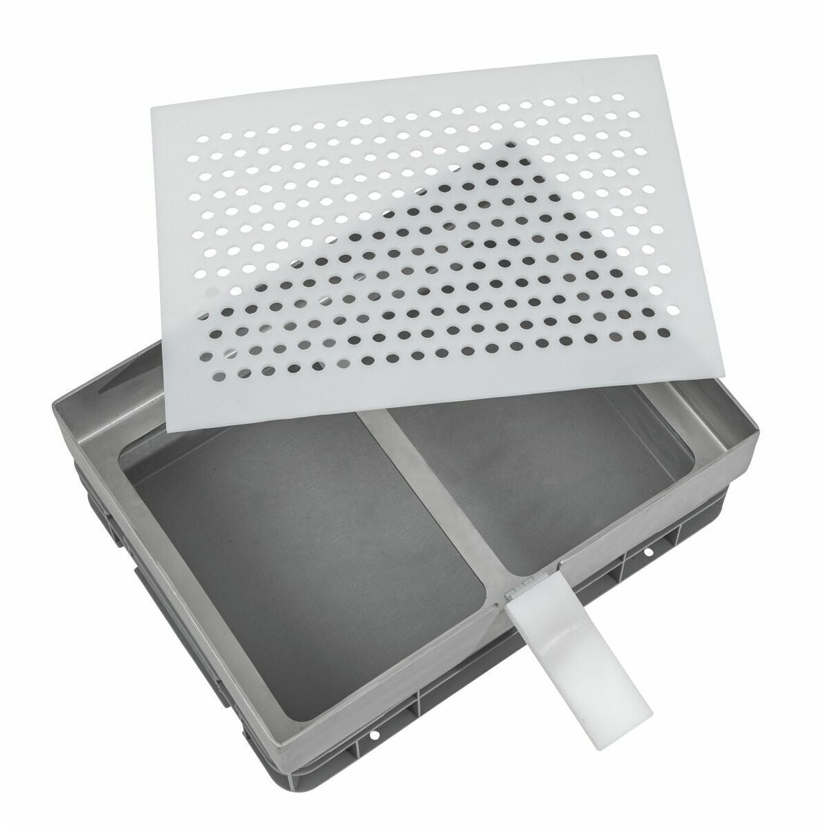 - Avtagbar separeringsstation för manuell separering av arbetsstycke och slipmedium.