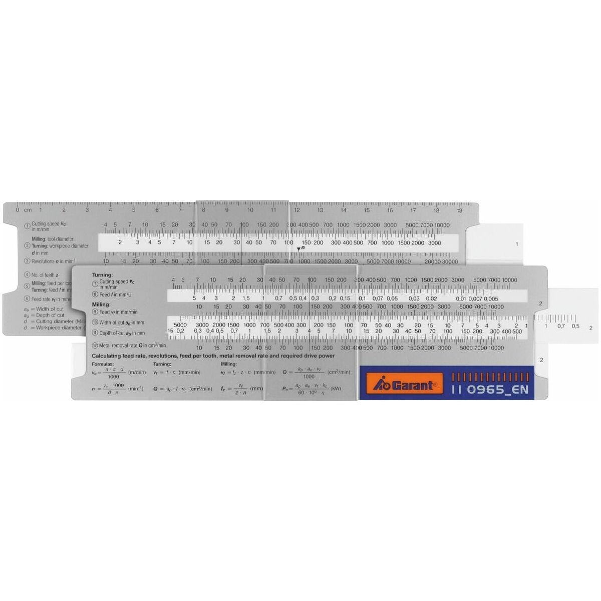 Med skärdataräknaren tyskspråkig (DE) och engelskspråkig (En), fastställs snabbt och enkelt för alla GARANT-fräsar och svarvverktyg rätt värden vid användning: n = 10 − 30 000 v/min.
