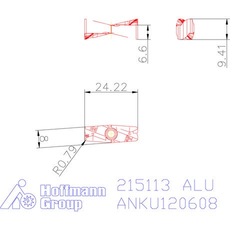 Mycket stabilt och dubbelsidigt vändskär med 4 skäreggar. Helt plan anliggning tack vare slipade anliggningsytor. Vändskärets unika geometri gör att skäreggen inte försvagas av hålet.