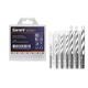 Universalborr med särskilt skarp hårdmetallplatta för exakta borrhål i olika material. Spiralspår med stor volym för snabb borrmjöls- och spåntransport. Fäste av seghärdat specialstål.