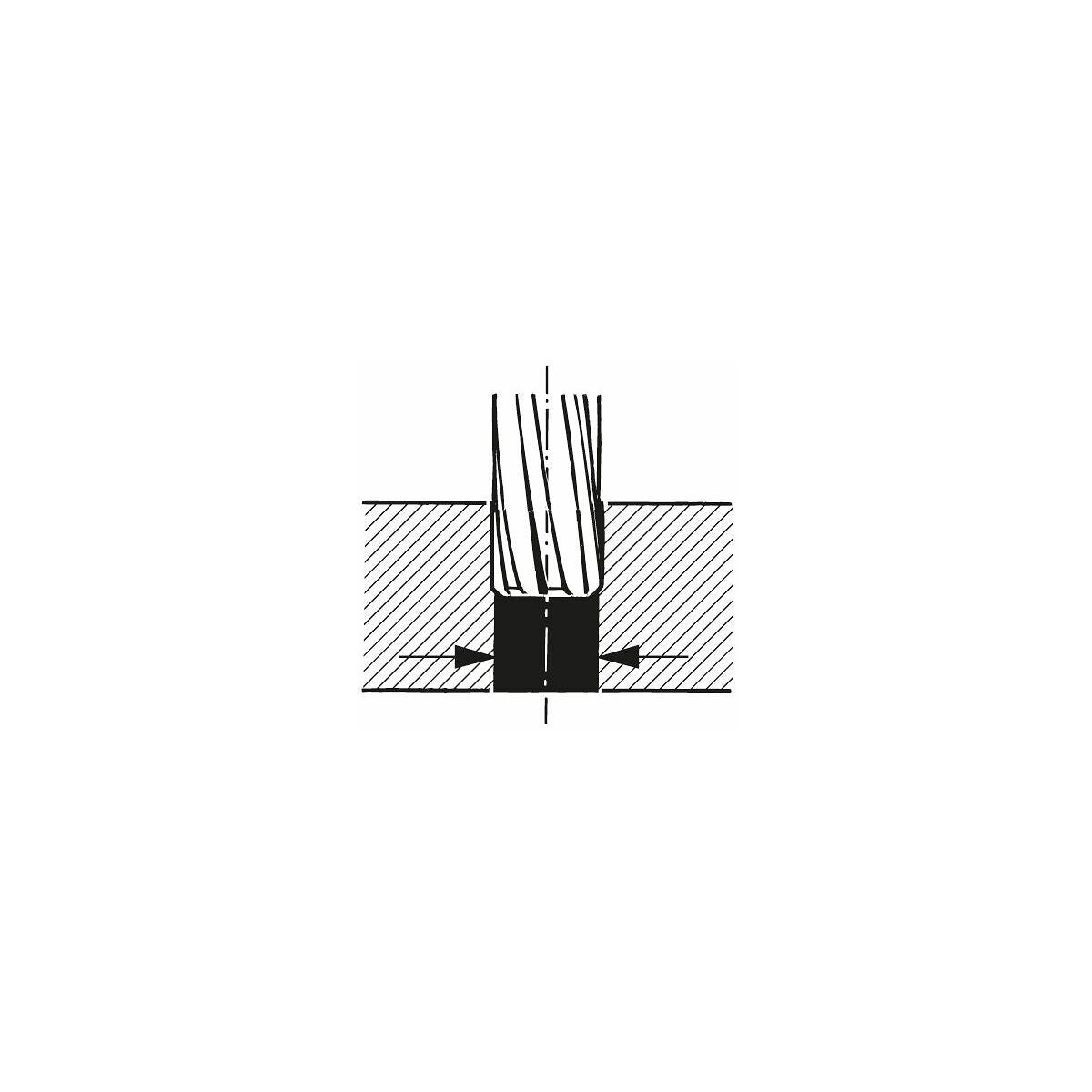 För brotschning av genomgående hål, eftersom spånen drivs ut i skärriktningen. Kan även användas till bottenhål tack vare den korta skärfasen.