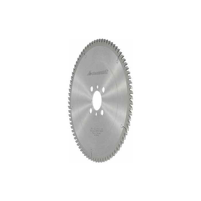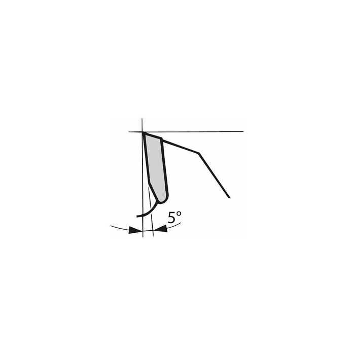Positiv spånvinkel 5° för jämna gradfria snitt på maskiner med sågbladet monterat underifrån eller horisontellt. Mycket lämpligt för format-, gering- och längskapning av profiler och solida material.