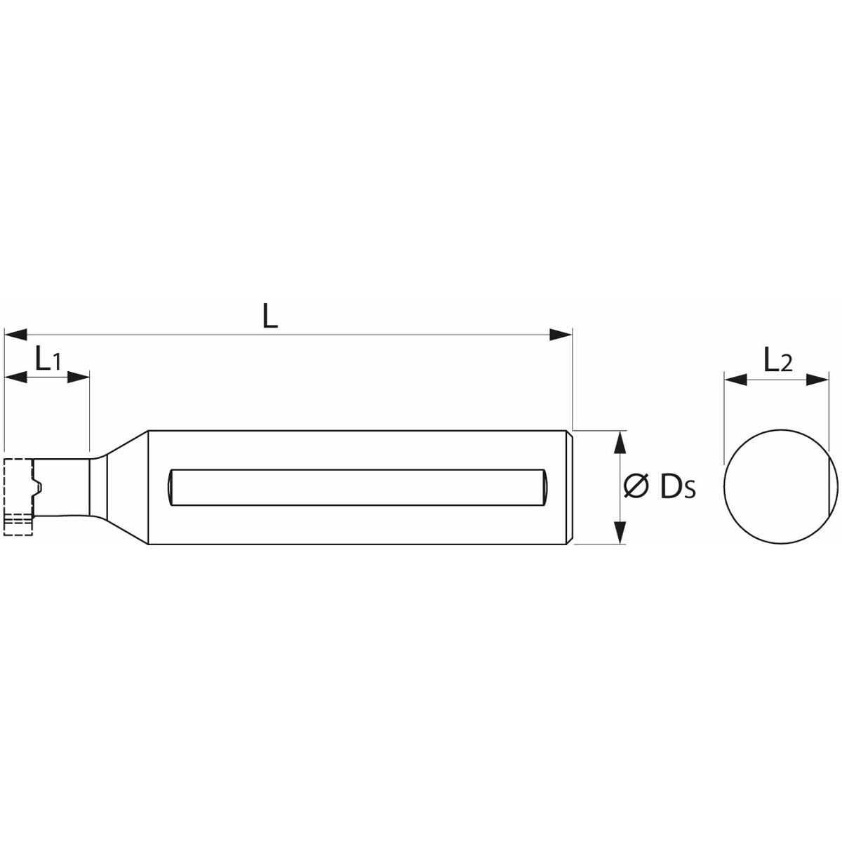 - Hårdmetallskär fastskruvat på änden, formanpassad kraftöverföring genom ändgrad.