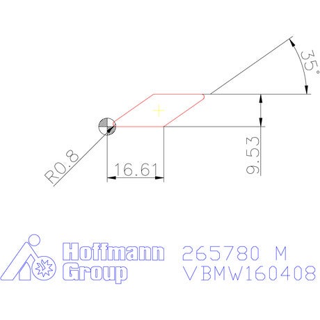 Andra vändskärsformer, storlekar och hörnradier levereras på begäran.